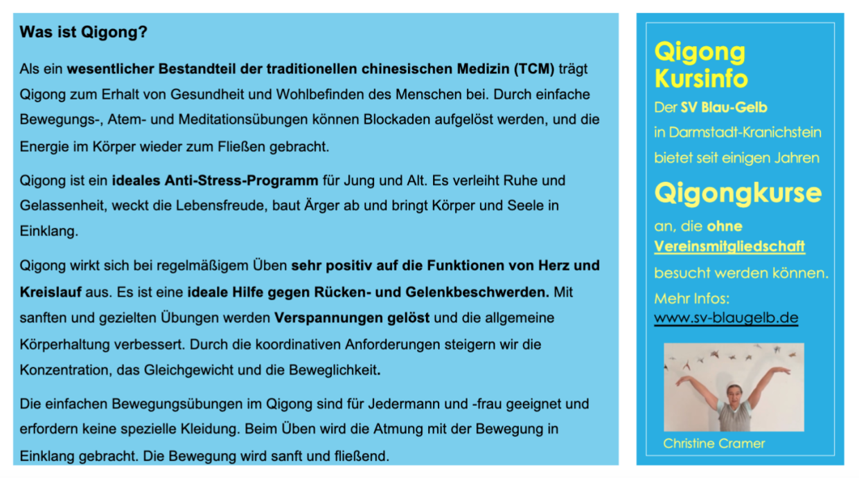 Ich freue mich, auf viele gemeinsame Spaziergänge mit Qigong. Sollte euch keiner der Termine passen, könnt ihr mir auch schreiben. Vielleicht finden wir einen anderen Termin für einen Qigong-Spaziergang, ganz nach deinen Wünschen.